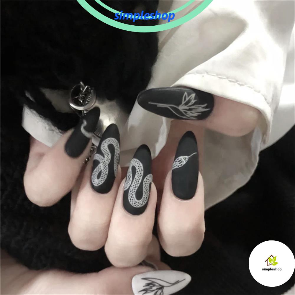 Simple Nail Decoration Long Stiletto Punk Snake Pattern Fake Nails Artificial Manicure Nail Art Tips Full Cover False Nail Shopee Indonesia